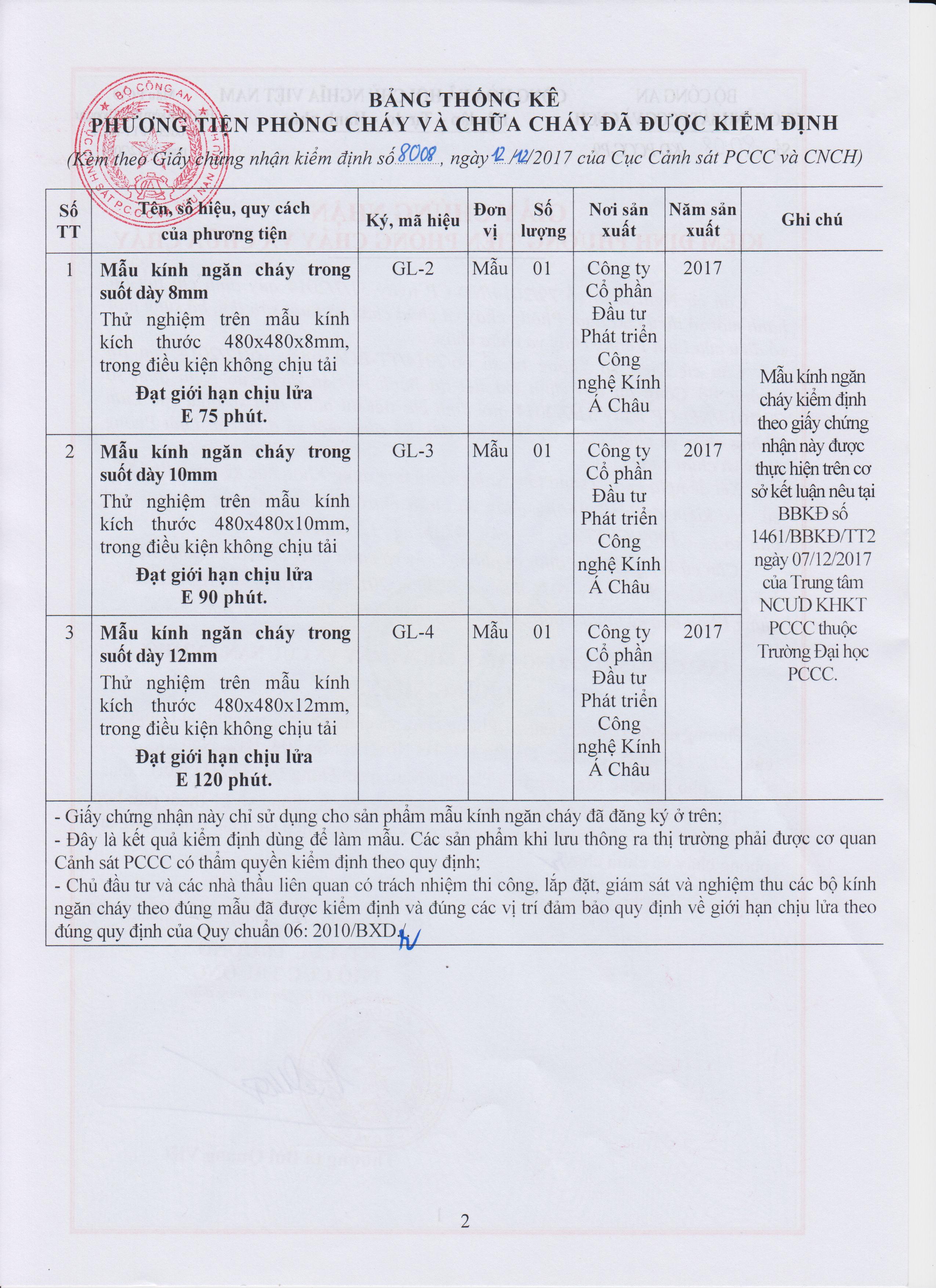 Giấy chứng nhận PCCC, kiểm định phương tiện PCCC cho sản phẩm kính ngăn cháySản phẩm cửa chống cháy được Cục cảnh sát Phòng cháy chữa cháy, cứu nạn và cứu hộ kiểm định được phép sử dụng trong công tác PCCC.